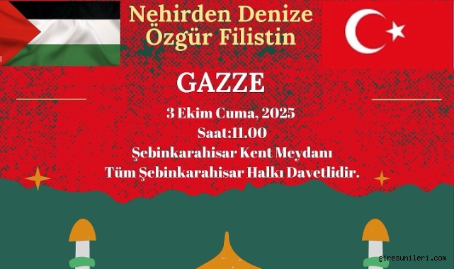 Şebinkarahisar Belediyesi tarafından yapılan açıklamada, Filistin halkının yaşadığı insanlık dramına dikkat çekmek ve yardım filosuna destek vermek amacıyla düzenlenecek programa tüm vatandaşlar davet edildi.