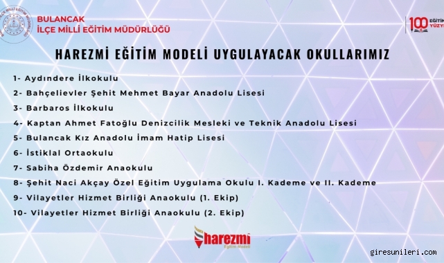 Bulancak İlçe Millî Eğitim Müdürü Şenel Bulut, modelin önemine dikkat çekerek şu değerlendirmede bulundu: “Harezmi Eğitim Modeli, öğrencilerimize 21. yüzyıl becerilerini kazandırmada önemli bir rol oynuyor. Öğretmenlerimizin ve öğrencilerimizin özverili çalışmalarıyla bu yıl da başarılı sonuçlar elde edeceğimize inanıyorum.”