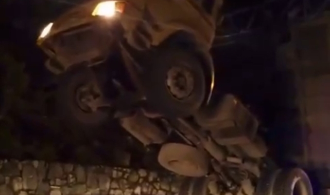 Bolu'nun Göynük ilçesinde seyir halindeyken damperi açık kalan kamyon, yol üzerindeki KGYS direğine çarptı. Askıda kalan kamyonda sıkışan sürücü, itfaiye ekiplerinin çalışması sonucu kurtarıldı.