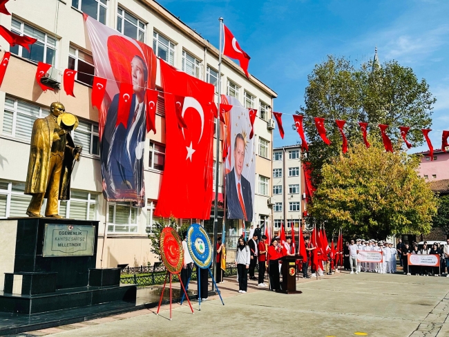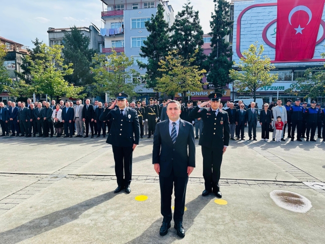 Hükümet Konağı önünde düzenlenen törende Atatürk Anıtı’na çelenk sunulmasının ardından, saygı duruşunda bulunuldu ve İstiklal Marşı okundu.