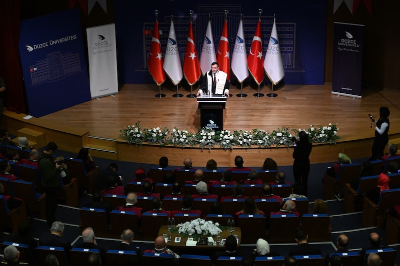Cumhurbaşkanı Yardımcısı Cevdet Yılmaz'a, Düzce Üniversitesi tarafından fahri profesörlük ünvanı verildi. Yılmaz, 2025-2026 Akademik Yılı açılış programına katılarak akademisyen ve öğrencilerle bir araya gelerek törende bir konuşma yaptı.
