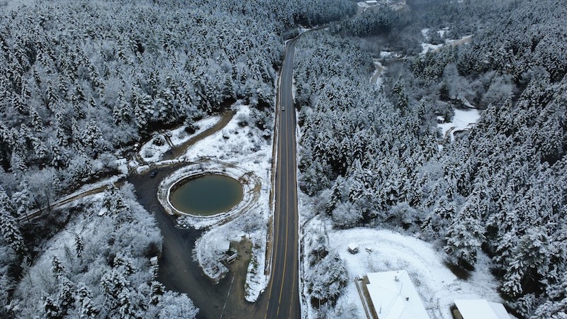 Karabük'ün yüksek bölgelerinde kar yağışı etkisini sürdürüyor. Safranbolu'nun Sarıçiçek Yaylası ve Ömür Ahmet Kıran mevkileri ile Karabük-Bartın kara yolunun 1030 rakımlı Ahmetusta Geçidi, birkaç gündür etkili olan yağışın ardından beyaza büründü. Kar yağışının ardından oluşan manzara dronla görüntülendi.