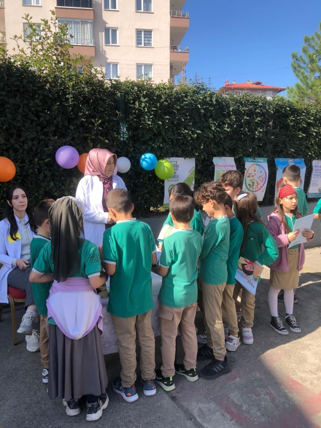 Programda çocuklar, sağlık personeli tarafından kurulan eğitim istasyonlarını ziyaret ederek birçok konuda bilgi edindi.