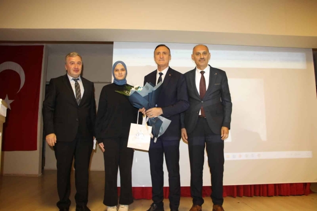 Öğrencilere bilgi ve deneyimlerini aktaran TSKGV Genel Müdür Yardımcısı Sipahioğlu’na Giresun İl Millî Eğitim Müdürlüğü tarafından teşekkür edildi.