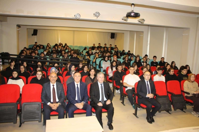 Savunma sanayisindeki gelişmeler ve gençler için kariyer fırsatlarının ele alındığı programda İl Millî Eğitim Müdür Yardımcısı Ergin Aybar, okul idarecileri, öğretmenler ve 12. sınıf öğrencileri hazır bulundu.