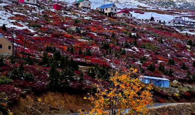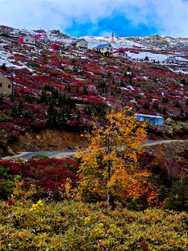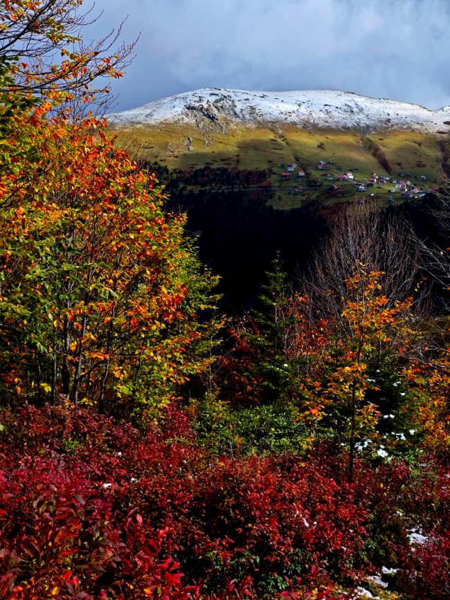 Trabzon ve Giresun sınırında yer alan 2 bin 182 rakımlı Sis Dağı Yaylası, yüksek kesimlerine yağan karla ve sonbahar renklerine bürünmesiyle güzel görüntü oluşturdu.