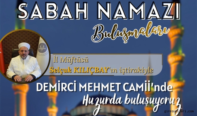 Giresun İl Müftüsü Selçuk Kılıçbay’ın katılımıyla düzenlenecek buluşma, 25 Ekim 2025 Cumartesi günü saat 06.10’da Demirci Mehmet Camiinde yapılacak.