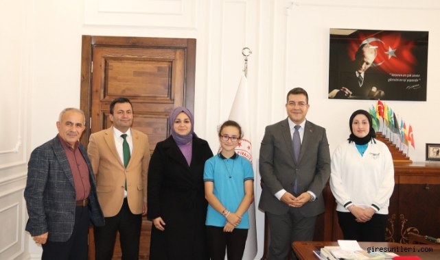 Piraziz Kaymakamı Burak Öz, Türkiye ikincisi olan öğrencileri, Proje Koordinatörü Şura Köroğlu ve Okul Müdürü Recep Öztürk ile birlikte makamında kabul etti. Öğrencilerin başarısından duyduğu memnuniyeti dile getiren Kaymakam Öz, “Piraziz’imizin adını başarıyla temsil eden öğrencilerimizi gönülden tebrik ediyorum. Emeği geçen tüm eğitimcilerimize teşekkür ediyor, başarılarının devamını diliyorum.” dedi.