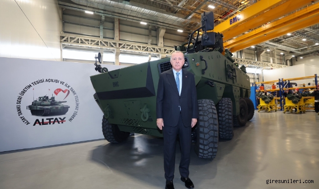 Bugün de BMC Ankara Tank ve Yeni Nesil Zırhlı Araçlar Üretim Tesisi'nin açılışını gerçekleştirdiklerini vurgulayan Cumhurbaşkanı Erdoğan, şu değerlendirmelerde bulundu: "Araştırma ve geliştirme merkezleriyle, test alanlarıyla, zırhlı laboratuvarları ve eğitim parkurlarıyla, 840 bin metrekarelik alana yayılan bu devasa tesiste, inşallah 1500'ü aşkın nitelikli personelimiz görev yapacak. Robotik kaynak sistemlerinden ileri sensör teknolojilerine, simülasyon altyapısından veri analitiğine kapsamlı bir teknoloji üssü daha savunma ekosistemimize entegre olacak. 63 bin metrekare kapalı alana sahip seri üretim hattımızda her ay 8 adet Altay tankı ile muharebe sahasının kalesi olarak tarif edilen 10 adet Altuğ imal edilecek. Diğer savunma ürünlerimizde olduğu gibi Altay tanklarında da hedefimiz, özellikle kritik malzemelerde kimseye bağlı olmamaktır. Ambargolara rağmen nasıl bugünkü aşamaya geldiysek inşallah bundan sonraki süreci de başarıyla yürüteceğiz. Her zaman söylüyorum, bugün bir kez daha tekrar ediyorum. Hedeflerimize giden yolda önümüze çıkan ve çıkarılan engeller bizi sadece yavaşlatır, belki biraz geciktirir ama menzile varmamıza asla mani olamaz. Ya bir yol bulur, ya bir yol açar, eninde sonunda hedeflediğimiz yere ulaşırız. Stratejik önemi fevkalade yüksek bu modern tesisin bizleri hedeflerimize bir adım daha yaklaştıracağına inanıyorum."