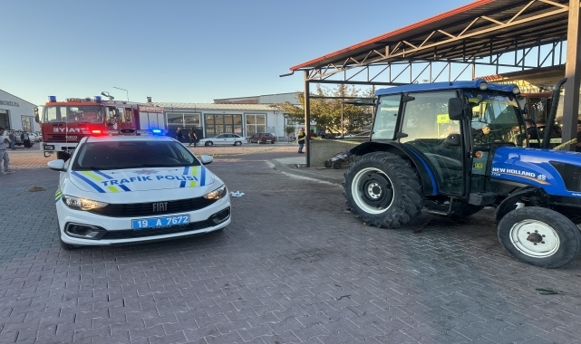 Çorum'un Alaca ilçesinde, traktörün çeki demiri ile kabini arasına sıkışan kişi yaralandı